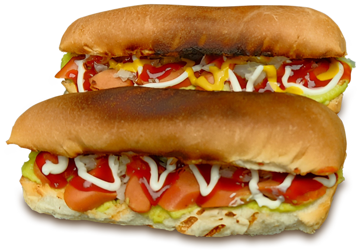 Panes de , Pasta de pollo , Jamón y queso kraft , Salchicha y Guacamol.
